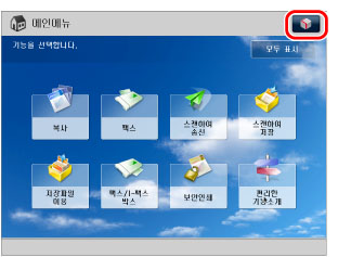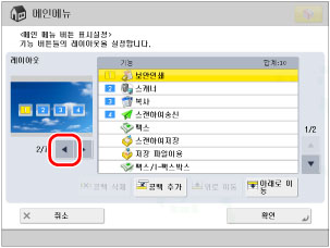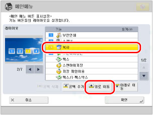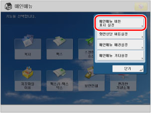 이 절에서는 [복사], [스캔하여 저장], [팩스] 및 [보안인쇄]라는 네 가지 키 유형을 해당 순서에 따라 터치 패널 화면에 표시되도록 설정하는 방법에 대해 설명합니다.