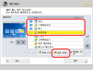 4단계를 반복하여 [스캔하여 저장]을 <2> 위치로 옮기고, [팩스]를 <3> 위치로 옮긴 다음, [보안인쇄]를 <4> 위치로 옮깁니다.