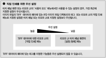 터치 패널 화면 또는 리모트 UI에서만 사용할 수 있는 설정의 경우, 가장 최근에 지정한 설정이 우선시됩니다.
