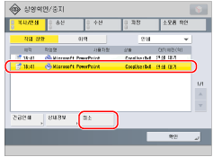 <작업 이력 화면에서 취소한 인쇄 작업에 <NG>가 표시됩니다.