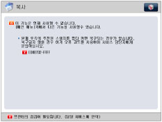 에러에 의해 대상 기능이 제한된 경우 메인 메뉴 화면의 상단에 단축키를 사용하거나 퀵 메뉴를 사용할 때 이 기능은 사용할 수 없습니다.