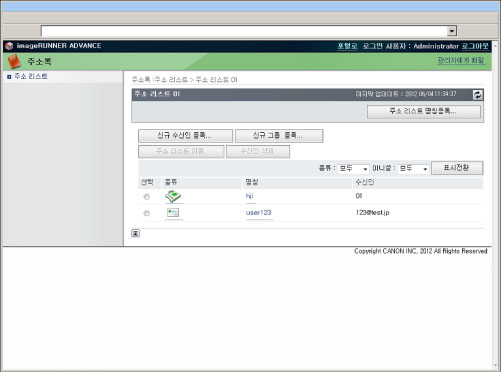 주소 리스트 관리 작업은 기기의 조작 패널에서