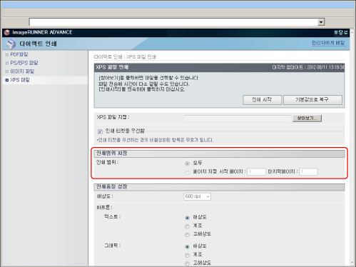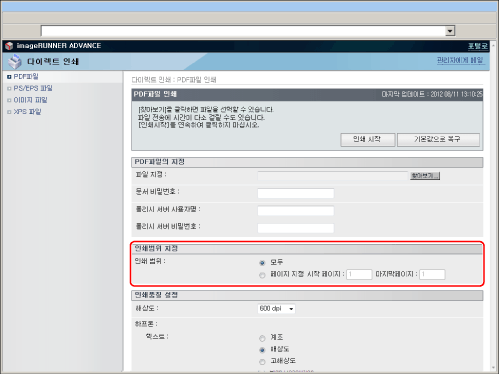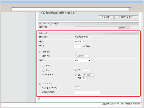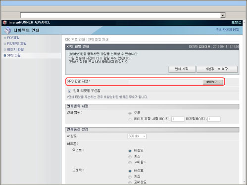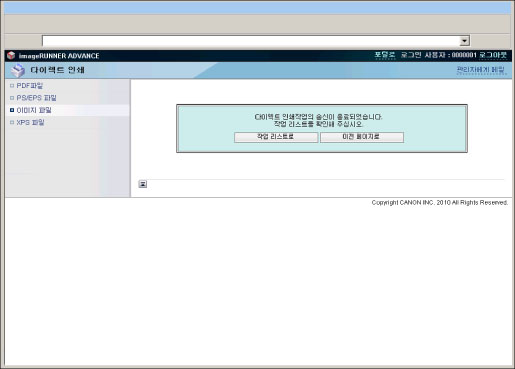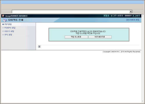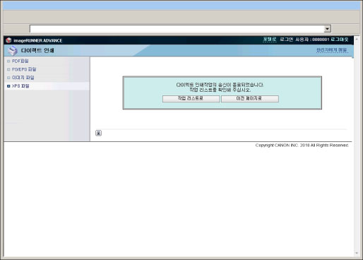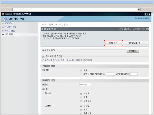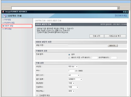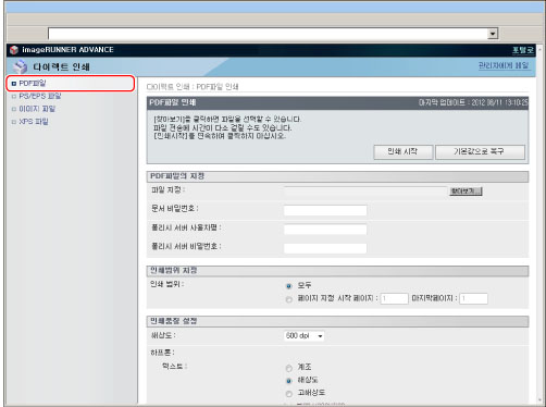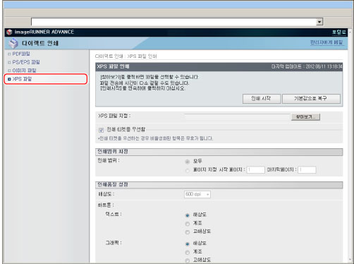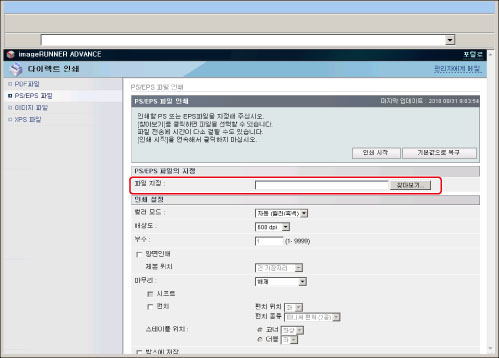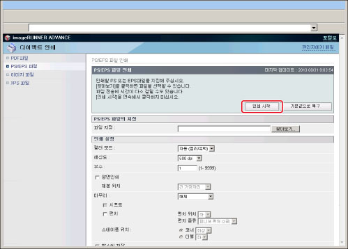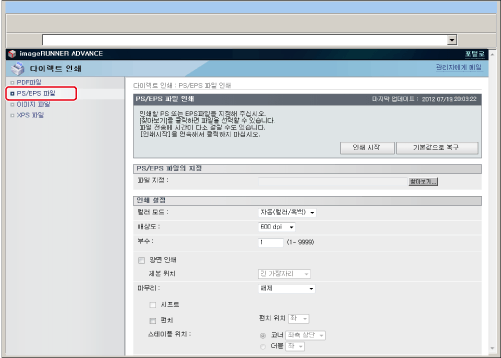 리모트 UI에서 직접 PS/EPS 파일을 인쇄하려면 PS Printer Kit를 활성화해야 합니다.