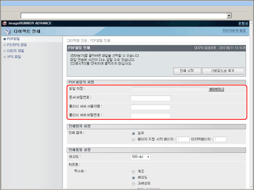 URL 입력을 통한 PDF 파일 인쇄에는 HTTP 프로토콜만 지원됩니다.