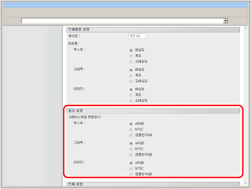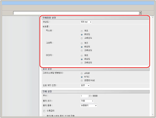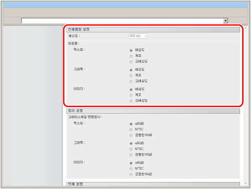 설정은 텍스트, 그래픽 및 이미지 데이터에 대해 개별적으로 설정될 수 있습니다.