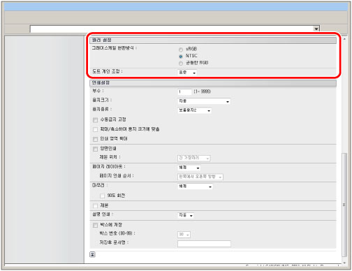 이 설정을 사용하여 컬러 데이터를 그레이스케일 데이터로 변환할 수 있습니다.