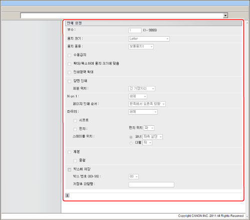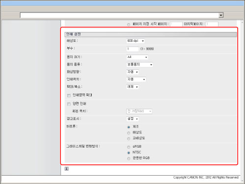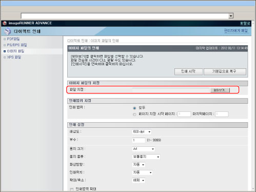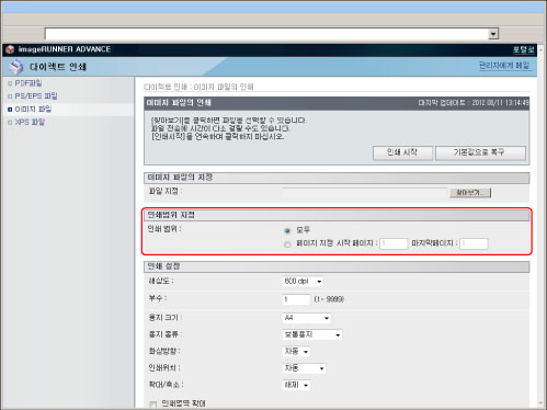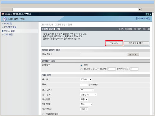 URL을 지정하여 인쇄하려면 [관리설정](설정/등록)의 [리모트 UI]에서 [참조 인쇄 사용]을 '설정'으로 지정해야 합니다.