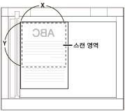 [X] 또는 [Y]를 누르고 → 스캔 크기(mm)를 입력합니다.