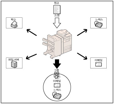 스캔한 문서를 이메일 주소, I-팩스 주소 또는 파일 서버로 송신하려면 네트워크 설정을 지정해야 합니다. (See "이메일/I-팩스 공통 통신 설정.")