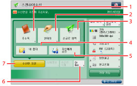 [기타 기능]에서 모드로 몇개의 단축키를 표시합니다. [양면원고] 및 [원고혼재]는 기본으로 표시됩니다. (See "단축키 지정.")