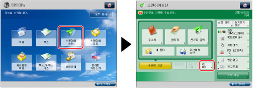 네트워크에 있는 클라이언트 기기에서 서버 기기의 원터치 버튼에 등록된 수신인을 검색할 수도 있습니다. (See "원터치 버튼 사용하여 수신인 지정.")