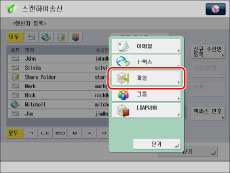 주소록 화면에서 [ㄱ], [ㄴㄷ] 및 [ㄹㅁ] 등과 같은 키를 누르면 이름의 첫 번째 문자대로 수신인 리스트가 정렬됩니다.