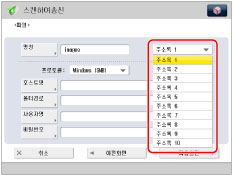 [표시언어/키보드 전환 설정/해제]를 '설정'으로 지정하면 파일 서버 수신인의 호스트명 및 폴더 경로가 올바르게 나타나지 않을 수도 있으며 찾아볼 수 없을 수도 있습니다. (See "표시 언어/키보드 전환 사용.")