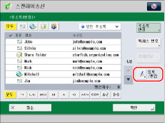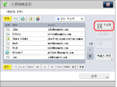 수신인을 삭제하려면 삭제할 수신인을 선택하고 → [삭제]를 누릅니다.