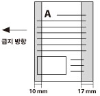 피더에 원고를 로드할 때 아래 다이어그램에 표시된 범위에만 컬러 부분이 있는 경우