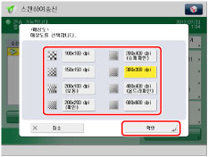 해상도를 200 x 400 dpi, 400 x 400 dpi 또는 600 x 600 dpi로 설정할 때 Additional Memory Type A (512MB)가 설치되어 있지 않으면 [자동 (컬러/그레이)], [자동 (컬러/흑백)], [풀컬러] 또는 [그레이스케일]을 선택할 수 없습니다.