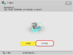 일부 프린터 모델에서는 스캐너가 자동으로 오프라인으로 전환되도록 설정할 수 있습니다("자동 오프라인" 참고).