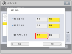 <WSD 스캔기능 사용>에서 [설정]을 누릅니다.
