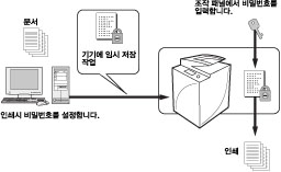 비밀번호를 할당한 다음 컴퓨터에서 본 기기로 송신된 문서(인쇄 데이터)를 인쇄할 수 있습니다.