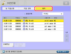 현재 작업을 일시 중지하고 선택한 작업을 우선 인쇄하려면 [긴급 인쇄]를 누릅니다.