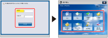 (숫자 키)를 사용하여 부문 ID 및 비밀번호를 입력합니다.