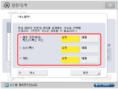 [부문별 ID 관리]를 [설정]으로 지정한 경우 위에 설명된 기능이 아닌 다른 기능과 MEAP 어플리케이션이 제한 기능 설정과 상관 없이 아래에 설명된 대로 작동합니다.