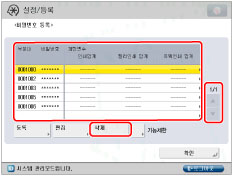 를 계속 누르고 있으면 사용할 수 있는 부문 ID 페이지를 앞으로 또는 뒤로 빠르게 연속으로 스크롤할 수 있습니다. 원하는 페이지가 표시된 경우 키를 놓습니다. 연속 스크롤은 다수의 부문별 ID가 등록되어 있는 경우 유용합니다.
