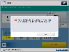 (Clear)를 눌러 틀린 값을 삭제합니다.0~999, 999페이지까지 제한면수를 설정할 수 있습니다. 제한면수에 도달하면 복사, 스캔 또는 인쇄할 수 없습니다. 제한면수에 도달하면 다음 화면이 나타납니다.