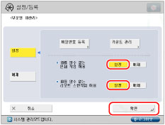 <ID를 알수 없는 인쇄 작업 허용> 및 <ID를 알수 없는 리모트 스캔작업 허용> 설정은 기기에 인쇄 기능 및 리모트 스캔 기능이 장착된 경우에만 사용가능합니다.