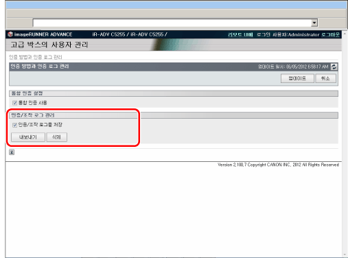 Canon에서는 인증 로그 관리 사용 또는 사용 불가능으로 인해 발생하는 어떠한 손해에 대해서도 책임을 지지 않습니다.