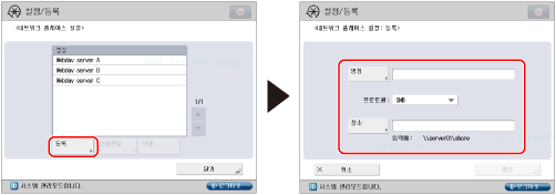 외부에 공개된 다른 imageRUNNER ADVANCE 시리즈 기기의 고급 박스가 아닌 다른 위치를 등록하지 마십시오. 이렇게 할 경우 기기에서 오작동이 발생할 수 있습니다.