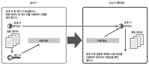 이 기기에서는 데이터 작성자와 데이터가 변경되지 않았는지 여부를 확인하는 전자 서명이 포함된 PDF를 작성할 수 있습니다.