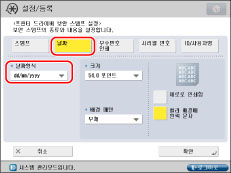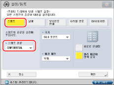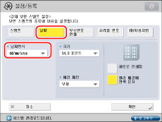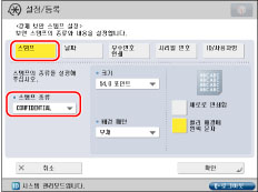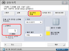 문자 입력에 대한 자세한 내용은 "터치 패널 화면에서 문자 입력."을 참고하십시오. [기능 설정](설정/등록)의 [페이지 번호 인쇄/스탬프의 문자열 등록]에 등록된 문자가 있을 경우 리스트에서 문자를 선택할 수 있습니다.