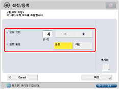 [-] 또는 [+]를 눌러 도트 크기를 설정합니다.