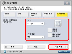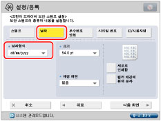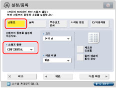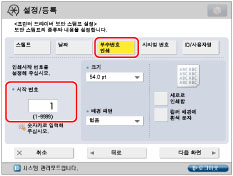 문자 입력에 대한 자세한 내용은 "터치 패널 화면에서 문자 입력."을 참고하십시오. [기능 설정](설정/등록)의 [페이지 번호 인쇄/스탬프의 문자열 등록]에 등록된 문자가 있을 경우 리스트에서 문자를 선택할 수 있습니다.