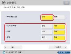 [부수번호 인쇄 옵션 설정] → <부수인쇄 옵션>에 대해 [설정] → 각 설정을 지정합니다.