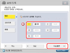 (숫자 키)를 사용하여 시작 시간을 입력하고 → [다음화면]을 누릅니다.