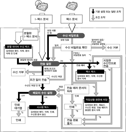 *9 또한 전송 수신인으로 지정하여 팩스 박스에 수신된 팩스/I-팩스 파일을 저장할 수 있습니다.