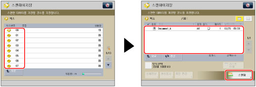 원하는 박스를 선택하고 → 원하는 파일을 선택한 다음 → [인쇄함]을 누릅니다.