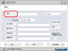 각각의 FTP, Windows(SMB) 및 WebDAV 설정 지정에 대한 자세한 내용은 "키보드를 사용하여 파일 서버 지정."을 참고하십시오.
