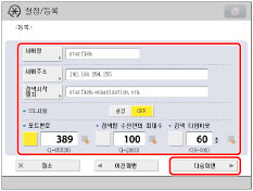 각 설정을 지정하고 → [다음화면]을 누릅니다.