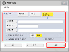 [수신인 설정] → [LDAP 서버 등록] → [등록]을 누릅니다.