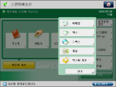 메인 메뉴 화면에 팩스 기능을 표시하도록 기기를 설정할 수 있습니다. 메인 메뉴 화면에 팩스 기능을 표시하려면 [스캔하여 송신]에서 팩스 기능을 표시할지 여부를 선택할 수 있습니다. [스캔하여 송신]에서 팩스 기능을 표시하여 이메일이나 I-팩스와 같은 다양한 송신 방법을 통해 여러 수신인에게 송신할 수 있습니다.