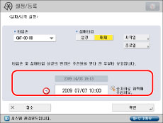 또한 설정/등록 화면에서 날짜 및 시간을 네트워크에 있는 서버와 자동으로 동기화하도록 지정할 수 있습니다. (See "TCP/IPv4 및 TCP/IPv6의 공통 설정.")