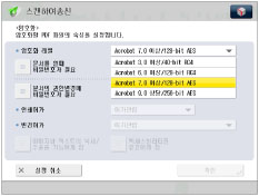 [Acrobat 10.0 상당/256-bit AES]가 아닌 [Acrobat 9.0 상당/256-bit AES]를 선택하려는 경우 다음 절차에 따라 선택 항목을 변경할 수 있습니다.