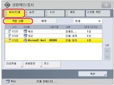 진행중인 인쇄 작업을 중지하거나 선택된 작업의 인쇄 우선권을 변경합니다. [긴급 인쇄]는 현재 작업을 일시 중지하고 선택된 작업을 인쇄합니다. [우선 인쇄]는 현재 작업이 완료된 후에 선택된 작업을 인쇄합니다.
