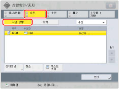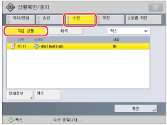 I-팩스가 POP 서버를 통해 수신한 경우 수신이 시작됩니다. [I-팩스 수신확인]은 전송 작업이 선택될 때 표시됩니다.