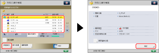 選擇所需的檔案→按[詳細資訊]→[確定]。