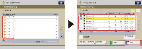 若使用「合併檔案後列印」模式合併和列印多個檔案,則會使用「存取已儲存檔案」的預設設定而不使用檔案各自的設定來列印這些檔案。但是,不會變更或刪除每個檔案的設定,並且保持創建此檔案時的設定。