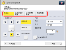 若設定[影印套編排]、[浮水印]或[列印日期]中的任兩個在同一位置列印,則按